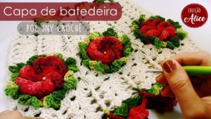 Ela também é uma capa de batedeira de crochê com flores, no caso a flor de crochê utilizada é a flor de crochê Alice que eu já disponibilizei a aula no canal por tempo limitado.