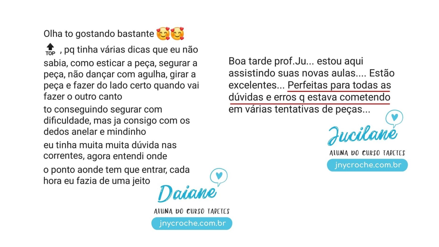 Obs.: Todas as aulas do Curso são em vídeo passo a passo detalhadas feitas pela professora Ju da JNY Crochê que é professora de verdade e conta com mais de 10 anos de experiência, criadora de centenas de peças de crochê exclusivas e que já ajudou milhões de pessoas a aprender crochê.