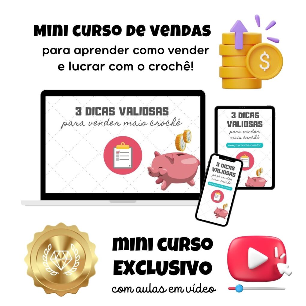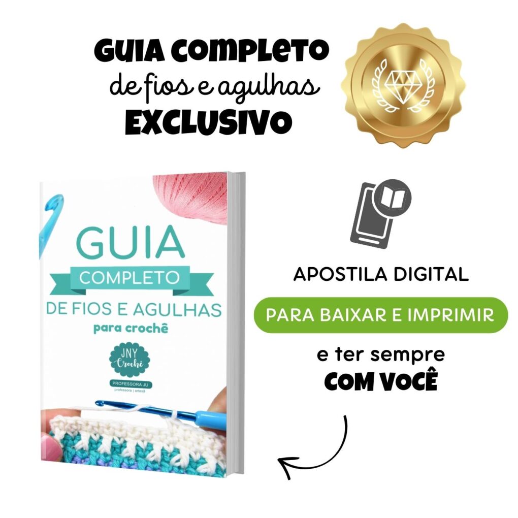 Obs.: A professora Ju da JNY Crochê é professora de verdade e reconhecida pela sua didática e técnicas de ensino diferenciadas. Também já ensinou MILHÕES de pessoas a aprender crochê, então é muito provável que você também vai conseguir aprender.