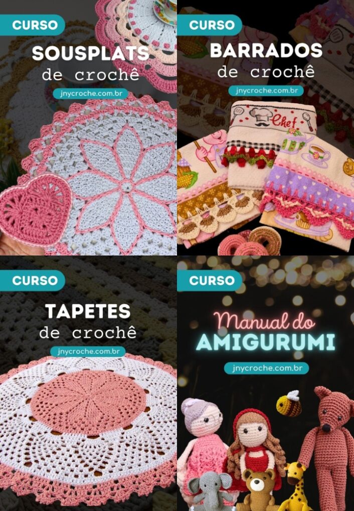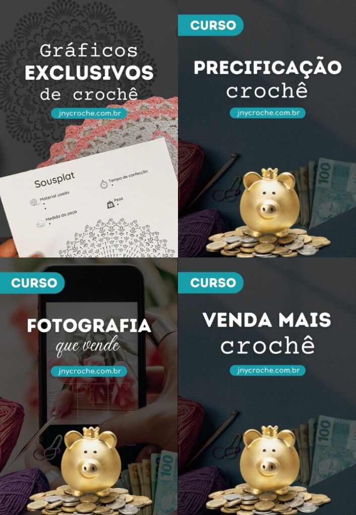 Obs.: A professora Ju da JNY Crochê é professora de verdade e reconhecida pela sua didática e técnicas de ensino diferenciadas. Também já ensinou MILHÕES de pessoas a aprender crochê, então é muito provável que você também vai conseguir aprender.